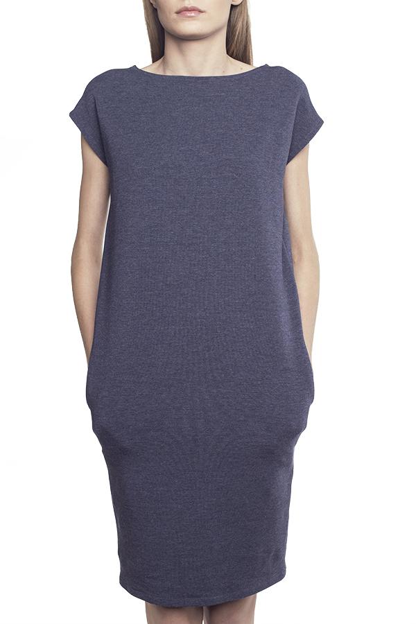Sukienka Trapez bez rękawa w różnych kolorach (biały, szary melanż, jeans, granat, czarny). Z bocznymi kieszeniami bezszwowymi, długość do kolana (zależy od wzrostu). Sukienka ma klasyczny krój na każdą okazję, bardzo wygodna, wykonana z wysokiej jakości dzianiny. Ubranie zostało wyprodukowane w Polsce w sposób odpowiedzialny społecznie i zgodny z zasadami etycznej mody. Skład: 96% bawełna, 4% elastan (pranie w pralce 30st.)