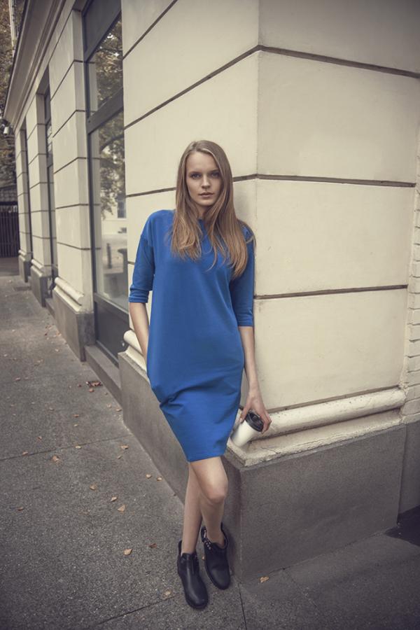 Sukienka Trapez z rękawem 3/4 za łokieć, w różnych kolorach (biały, szary melanż,jeans, czarny). Z bocznymi kieszeniami bezszwowymi, długość do kolana (zależy od wzrostu). Sukienka ma klasyczny krój na każdą okazję, bardzo wygodna, wykonana z wysokiej jakości dzianiny. Ubranie zostało wyprodukowane w Polsce w sposób odpowiedzialny społecznie i zgodny z zasadami etycznej mody. Skład: 96% bawełna, 4% elastan (pranie w pralce 30st.)