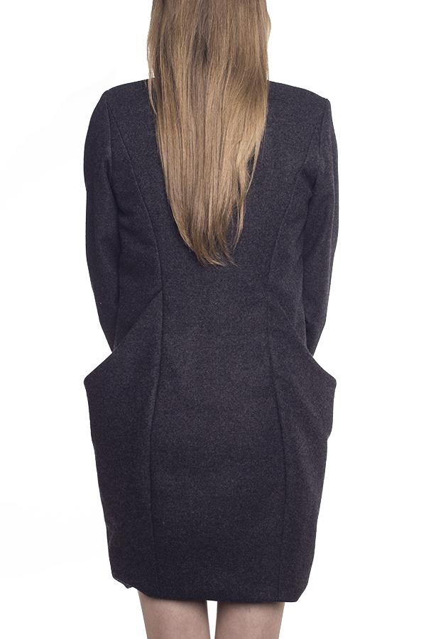 Płaszcz wełniany z bardzo wysokiej jakości wełny. Taliowany z bocznymi usztywnianymi kieszeniami, które formują sylwetkę. Długość przed kolano (w zależności od wzrostu). W wersji kolorystycznej grafit lub brąz. Zapiany na trzy napy. Z satynową chabrową podszewką. Ubranie zostało wyprodukowane w Polsce w sposób odpowiedzialny społecznie i zgodny z zasadami etycznej mody. Skład: wełna 81%, poliester 19%. Produkt do prania chemicznego w pralni.Czas oczekiwania na płaszcz: do 9 dni.