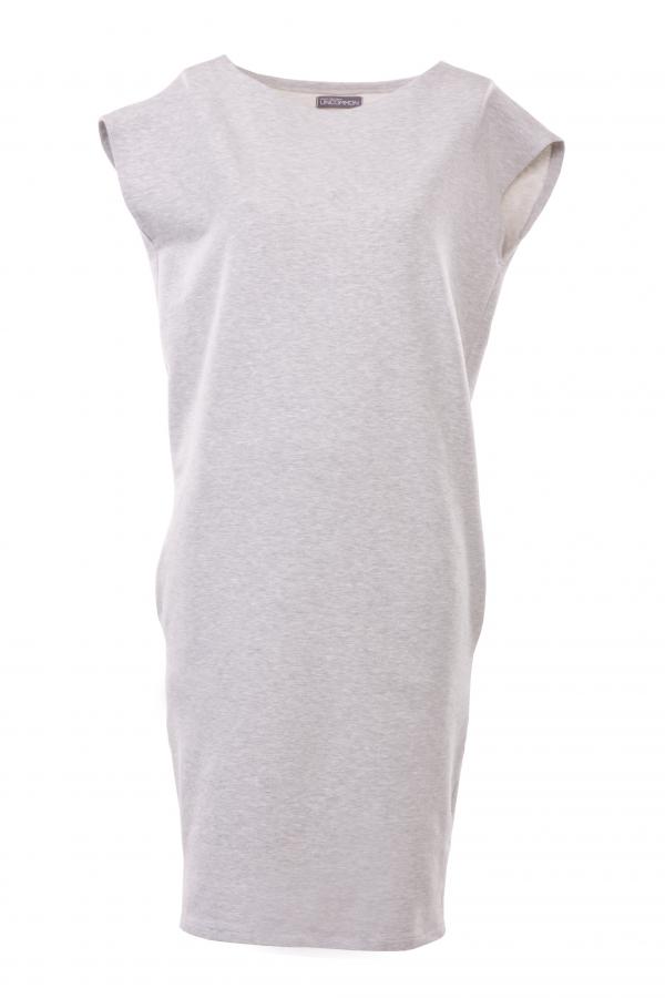 Sukienka Trapez bez rękawa w różnych kolorach (biały, szary melanż, jeans, granat, czarny). Z bocznymi kieszeniami bezszwowymi, długość do kolana (zależy od wzrostu). Sukienka ma klasyczny krój na każdą okazję, bardzo wygodna, wykonana z wysokiej jakości dzianiny. Ubranie zostało wyprodukowane w Polsce w sposób odpowiedzialny społecznie i zgodny z zasadami etycznej mody. Skład: 96% bawełna, 4% elastan (pranie w pralce 30st.)